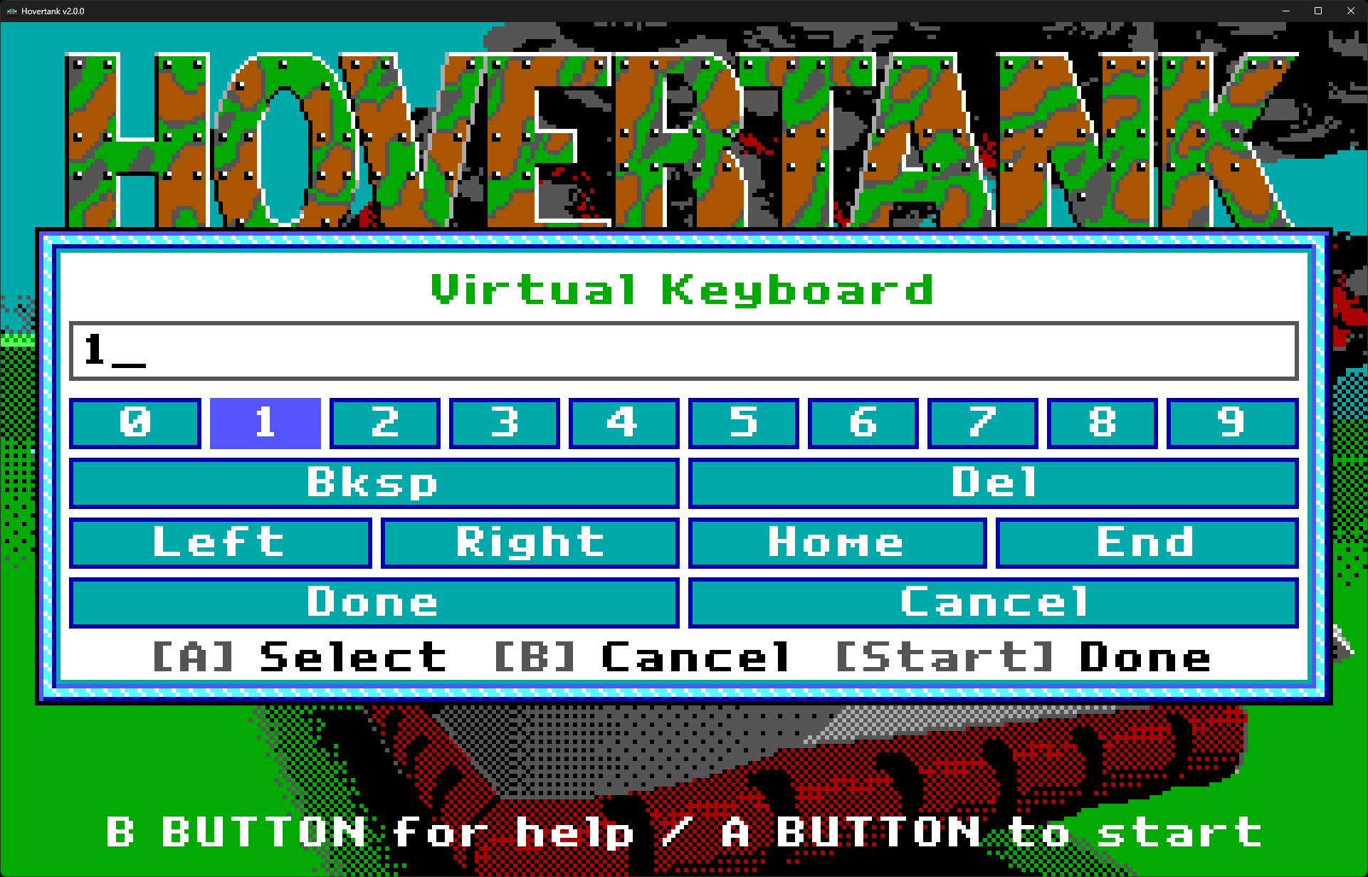 Note: Hovertank's virtual keyboard is context-aware and only shows valid keys for the current input dialog.