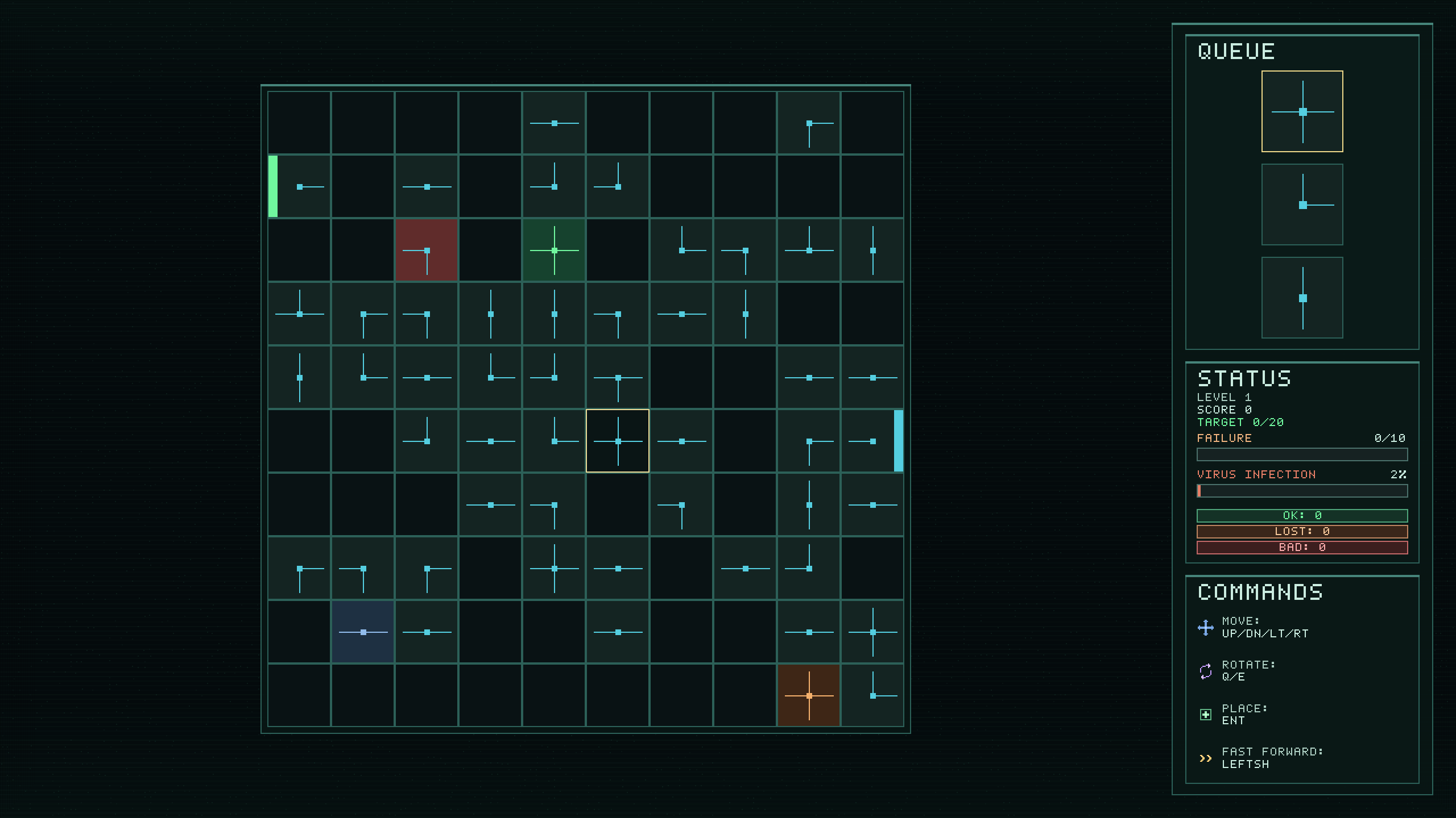 The core objective of the game is to deliver enough clean packets to meet the level target while avoiding the failure limit (lost packets + packets corrupted by virus infection).